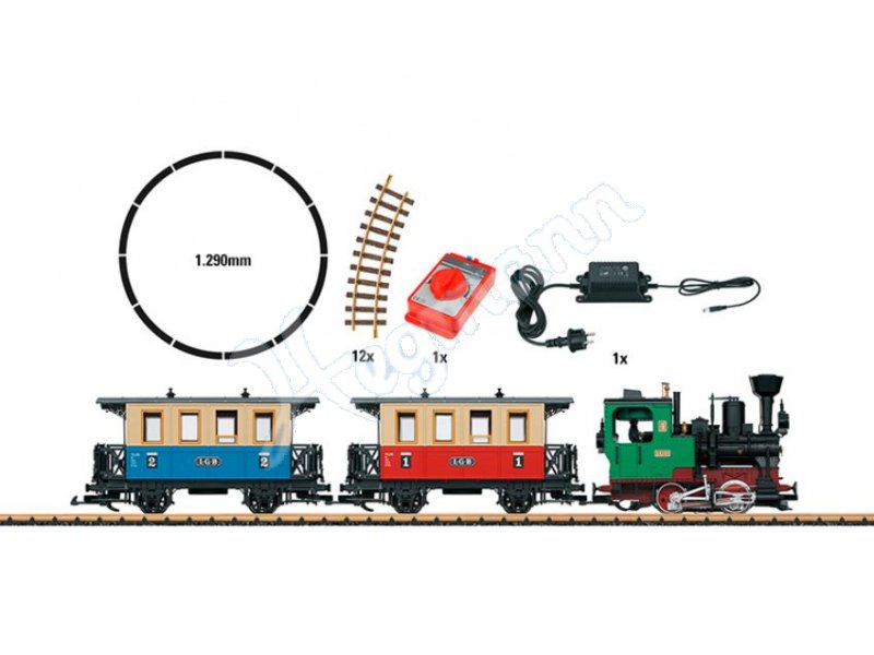 Dieses Startset enthält einen Oldtimerzug bestehend aus einer Tenderlok und 2 Personenwagen. Die Lok ist mit einem leistungsstarken kugelgelagerten Bühler-Motor sowie Spitzenlicht, Soundmodul und einem Raucheinsatz ausgerüstet. Das Set enthält zusätzlich einen kompletten Gleiskreis, Stromversorgung und einen Fahrregler. Zuglänge 85 cm.
