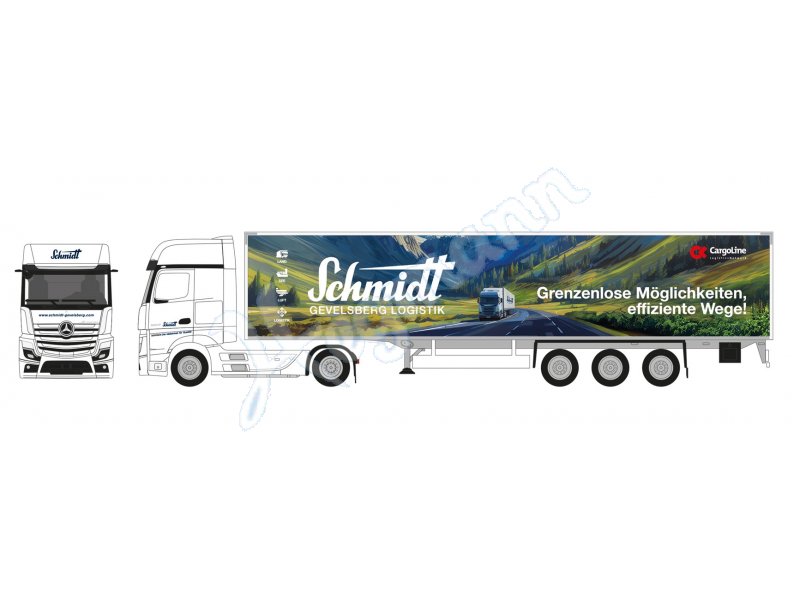 herpa 959711 H0 1:87 Mercedes-Benz Actros 18 L Gigaspace Koffer-Sattelzug “Schmidt Gevelsberg/Berglandschaft“