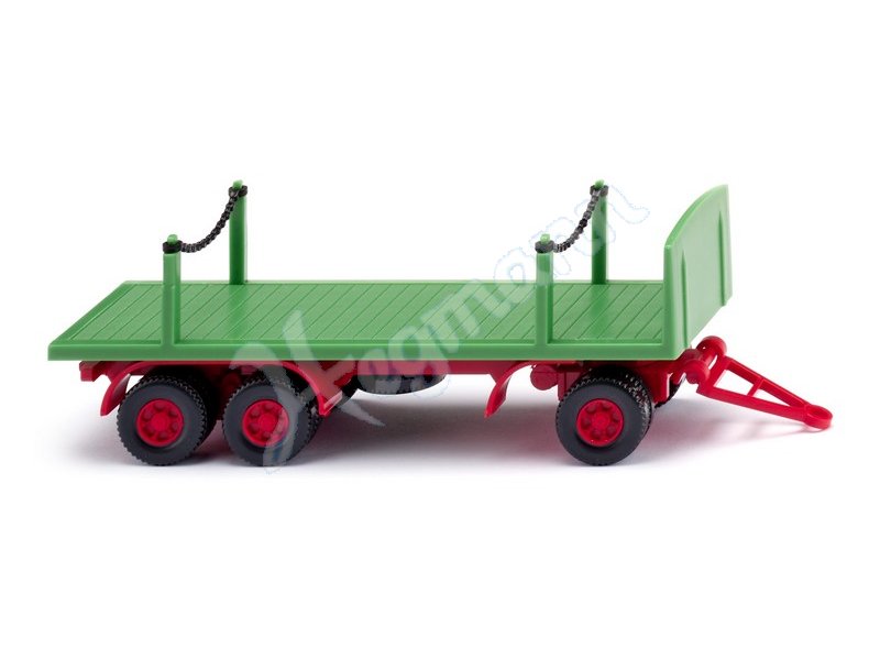 Fahrgestell mit Drehschemel und Deichsel karminrot. Aufbau maigrün. Ketten schwarz. Rücklichter rot bedruckt.
