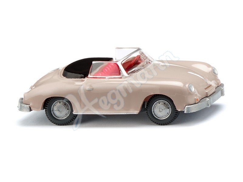 Karosserie sahara beige lackiert. Alusilbernes Fahrgestell mit Bodenplatte, Inneneinrichtung karminrot mit kupferbraunem Lenkrad. Felgen alusilber. Karosserieseiten mit gesilberten Türgriffen und unteren Zierleisten. Motorhaube mit gesilberter Zierleiste sowie heckseitigem Lüftungsgitter. Angedeutete Verdeckfläche schwarz bedruckt. Vordere Blinker tieforange. Scheinwerfer gesilbert, Rücklichter karminrot. Vorne und hinten Porsche-Schriftzug perlgold gehalten. Scheibenrahmen und Scheibenwischer gesilbert.