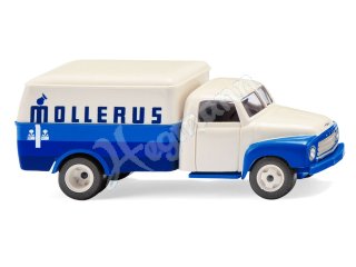 Karosserie beige. Inneneinrichtung braunrot, Fahrgestell anthrazitgrau. Lenkrad schwarz eingesteckt, beigegrauer Busfahrer mit koloriertem Gesicht. Busfront mit silbernen Kühlergrill sowie silbernem MAN- und Büssing-Schriftzug und gesilberten Scheinwerfern. Umrandung der Fensterprofile und Scheibenwischer schwarz bedruckt. Zielschilder mit Ortsschild Zehlendorf sowie Liniennummer 1. Umlaufend mehrfarbige Werbung Möbel-Hübner.