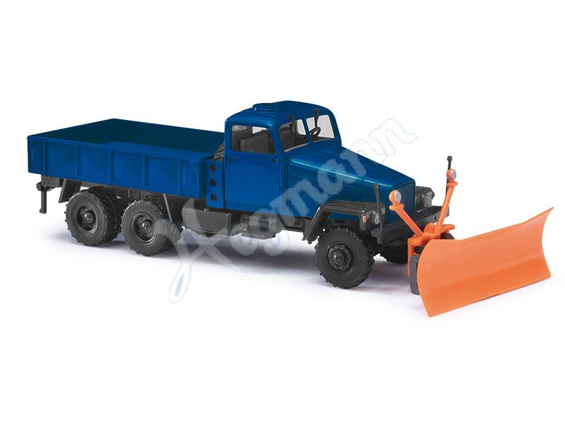 Winter in der DDR. In vielen Werken, wie beispielsweise in Kraftverkehrsbetrieben, baute man dem kraftvollen G 5 einen Schneepflug an, um so die Wege und Straßen von den Schneemassen zu befreien.