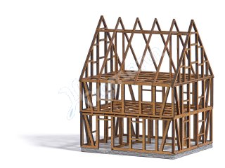 Holzkonstruktion mit Außen- und Innenwänden sowie den Zwischendecken aus echtem Holz. Alle Teile fertig koloriert. Bausatz. Perfekte Ergänzung: Fachwerkhaus im Bau 1371.