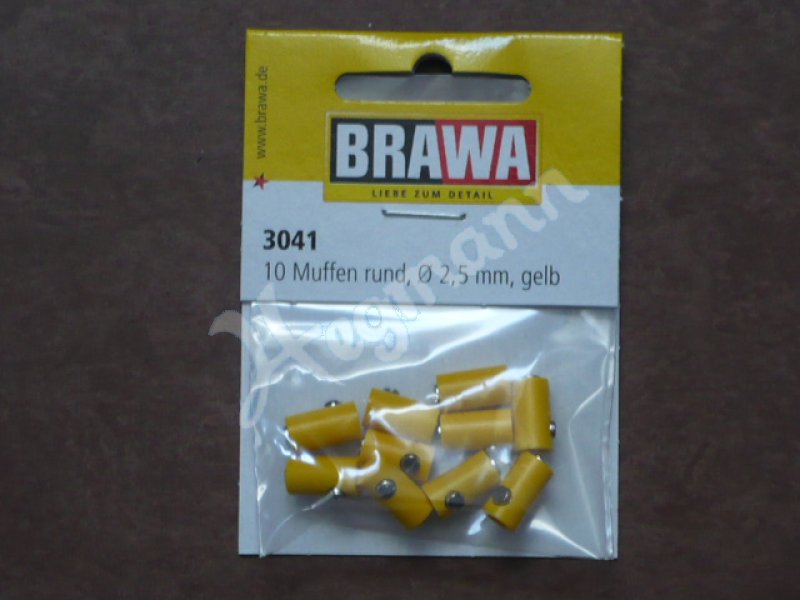BRAWA Eisenbahnstecker-Muffen (Verbinder) rund gelb 2,5 mm ohne Querloch
