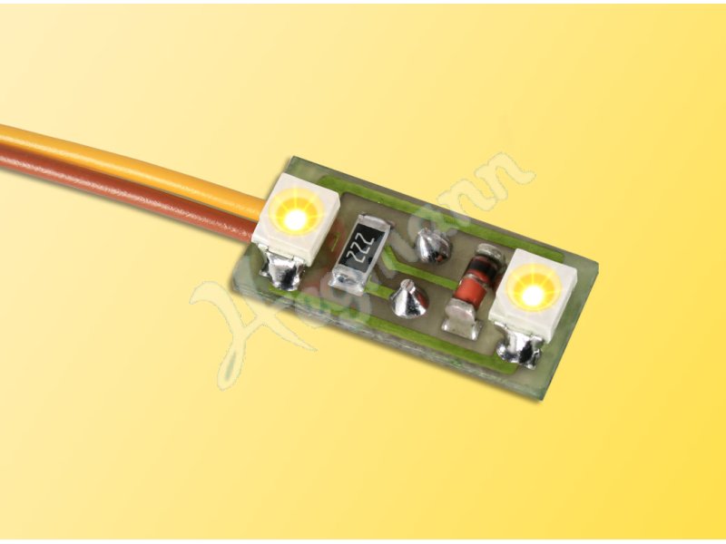 Ideal für die Innenbeleuchtung von Gebäuden aller Art: gelbe LEDs auf einer kleinen Platine zum Ankleben unter dem Dach, wartungsfrei. Passen auch zum Hausbeleuchtungs-Startset Art. 6005. Außerdem erhältlich als Art. 6018 mit weißen und als Art. 6021 mit warmweißen LEDs. Auch für TT und N Gebäude geeignet. TIPP: Das Powermodul Art. 5215 sorgt für flackerfreies Licht beim Betrieb mit Wechselstrom und erzeugt nahezu doppelte Helligkeit.