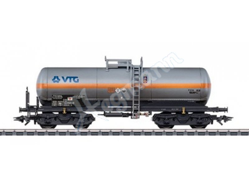 Vorbild: Chlorgaskesselwagen der VTG Vereinigte Tanklager und Transportmittel GmbH, Hamburg, eingestellt bei der Deutschen Bahn AG. Silbergraue Grundfarbgebung. Betriebszustand ab 2004.