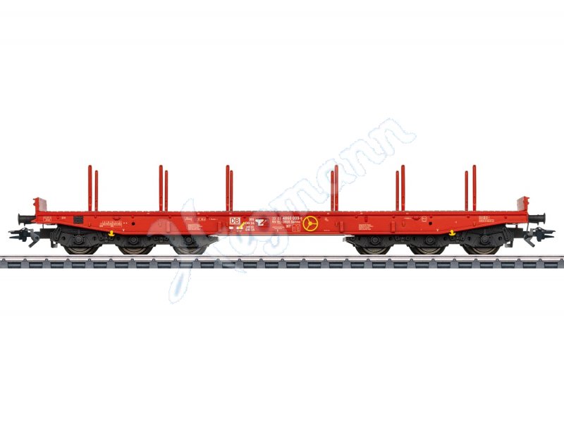 Modell: Rahmen aus Metall. Viele separat angesetzte Details. Dreiachsige Spezialdrehgestelle. Mit separat angesetztem Handrad für Feststellbremse. Vorbereitet für das Befahren mit Viessmann CarMotion-Fahrzeugen. Rungen und hochgeklappte Überfahrklappen liegen als separat ansteckbare Teile bei. Länge über Puffer 18,9 cm.Gleichstromradsatz E700580.