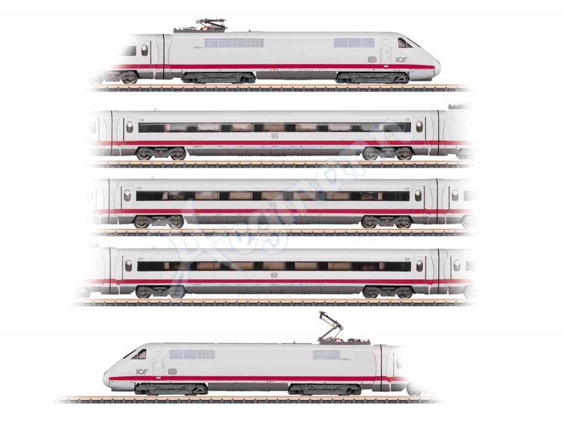Modell: Vorbildgerechte 5-teilige Einheit. Triebköpfe mit Glockenankermotoren. LED-Spitzenbeleuchtung warmweiß/rot im Wechsel der Fahrtrichtung. LED-Innenbeleuchtung. Oberleitungs-Umschaltschrauben unsichtbar nach innen verlegt. Elektrische Oberleitungsfunktion. Länge ca. 524 mm.