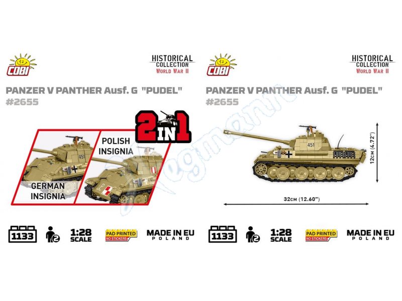 Ausgestattet ist das 1.133-teilige Set mit einer beweglichen Kanone, einer zu öffnenden Luke, einem dreh- und abnehmbaren Panzerturm, sowie einem abnehmbaren Maybach HL-230-Motor. Es enthält nachgebildete Maschinengewehre und Panzerketten sowie zwei Figuren – einen deutschen Panzerfahrer und einen Polen, Jan Uniewski, Codename „Uniewski“. „Lumenski“, der während des Warschauer Aufstands einen erbeuteten Panzer startete. Das Panzer V PANTHER Ausf.G „Pudel“-Set ist eine ideale Gelegenheit, berühmte Militärfahrzeuge aus Bausteinen zu bauen, die Geheimnisse der Vergangenheit zu entdecken und Ihre eigene Sammlung legendärer Maschinen zusammenzustellen. Deutsche und polnische Markierungen sind enthalten! Sie entscheiden, welche Version des Panzers Sie bauen möchten!