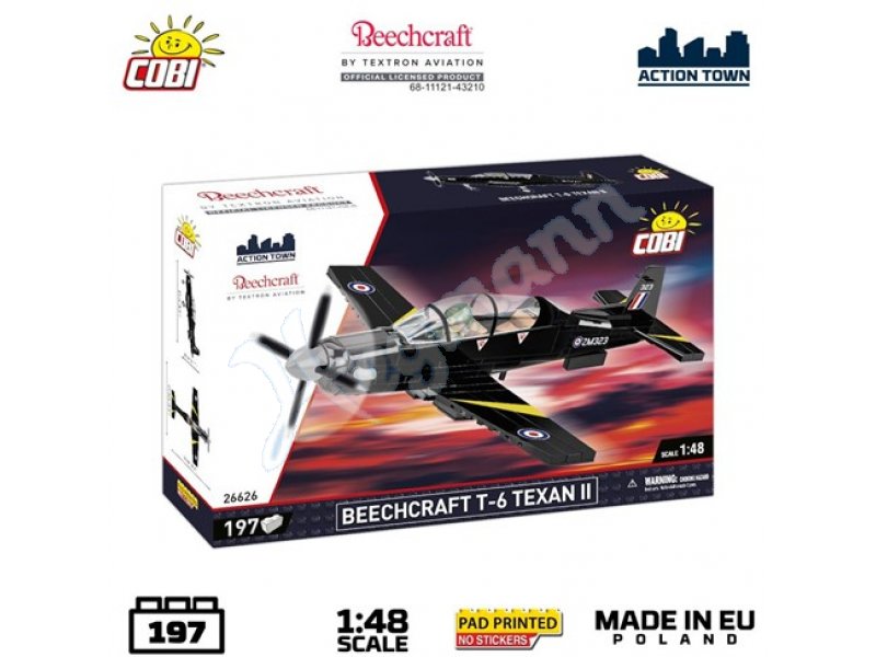 Die T-6C Texan II wird seit 2018 im Rahmen des UKMFTS (United Kingdom Military Flying Training System) im Rahmen des erweiterten Radartrainings und simulierter Kampfeinsätze in Großbritannien eingesetzt. Das Modell im Maßstab 1:48 besteht aus 197 Teilen und verfügt über ein zu öffnendes Cockpit mit beweglichem Propeller und Rädern.