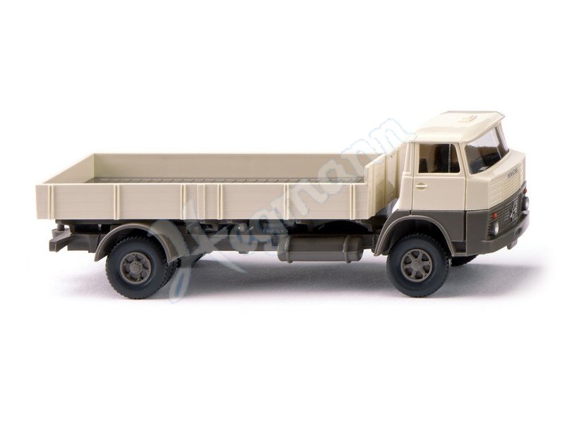 Es waren die hundertfach ausgelieferten Serienfarben der Kasseler Lkw-Bauer: Wenn der Henschel HS 14/16 ausgeliefert wurde, war eine zweigeteilte Lackierung des kubischen Fahrerhauses kundenseitig nicht nur erwünscht, sie galt überdies als hochmodern – es war das Signal für den Aufbruch in die Sechzigerjahre. WIKING-Modellbaumeister Alfred Kedzierski hatte damals ganze Arbeit geleistet. Als Henschel 1961 zur IAA die neue Lastwagengeneration vorstellte, gehörte auch die zukunftsweisende Reihe von kubischen Fahrerhäusern dazu. Der französische Designer Louis Lucien Lepoix hatte sie entworfen und damit allen Henschel fortan ein wirkungsvolles Gesicht gegeben. WIKING miniaturisiert den gelungenen Pritschen-Lkw, der noch heute dank seiner runden Scheinwerfer und des optisch lächelnden Charakters Sympathie versprüht.