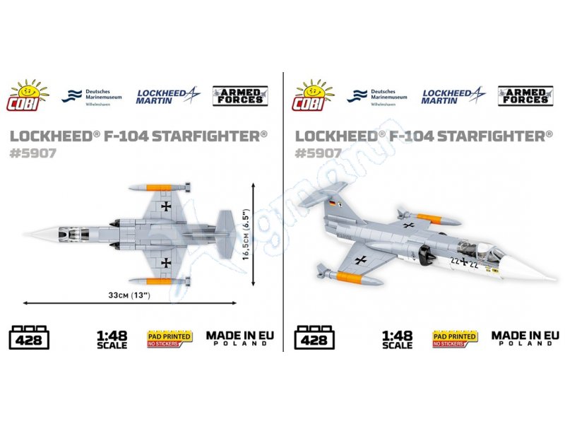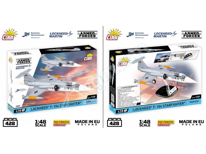 Dieses Modell ist eine weitere Zusammenarbeit mit dem berühmten Deutschen Marinemuseum. Wir haben die Museumskopie des legendären F-104-Kampfjets der deutschen Luftwaffe im Maßstab 1:48 hergestellt. Das Set besteht aus 428 Teilen, verfügt über bewegliche Räder, ein zu öffnendes Cockpit, anschauliche Drucke aus dem Einsatz in der Bundeswehr sowie einen Sockel und eine Stellplatte.