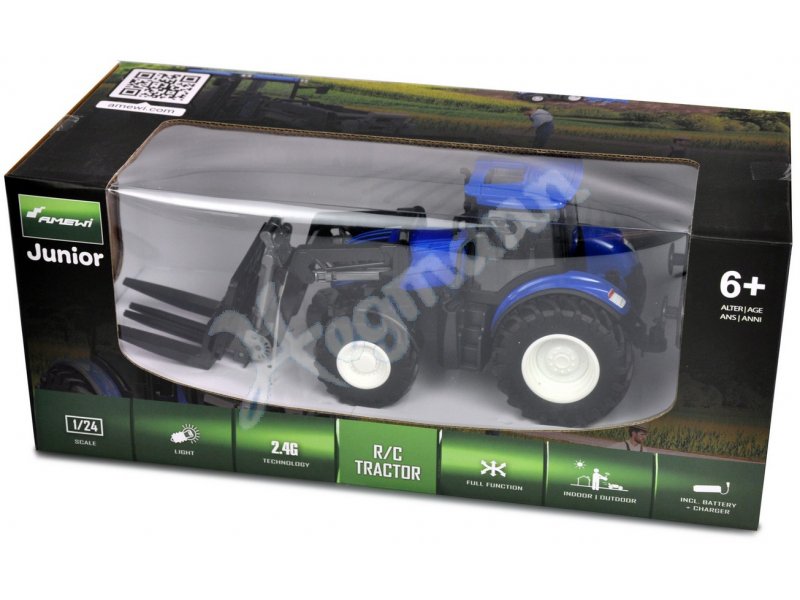 Staplerarbeiten rund um den Bauernhof lassen sich jetzt ferngesteuert drinnen wie draußen faszinierend nachspielen. Bereits ab 6 Jahren geeignet, überzeugt der RC-Traktor im Maßstab 1:24 durch seine kindgerechte Funktionalität, die die Fantasie anregt: Ob Heuballen oder Kisten – aufgeladen werden können mit diesem Frontlader vielerlei Materialien.