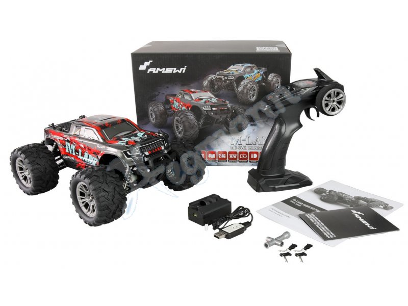 Kompakter, leistungsstarker Monstertruck im Maßstab 1:16 mit hochwertiger Ausstattung, Allradantrieb und einer beeindruckenden Höchstgeschwindigkeit von ca. 48 km/h im schnellen Gang. Das Modell bietet zwei per Fernsteuerung umschaltbare Geschwindigkeitsstufen, ideal für Einsteiger und Fortgeschrittene.